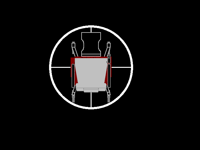 The bitmap drawing below shows the turning radius of a later model power wheelchair: