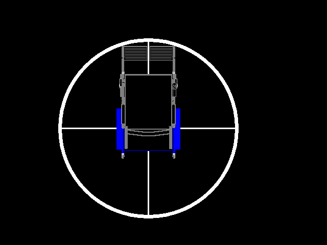 The bitmap drawing below shows the turning radius of a later model rehab wheelchair: